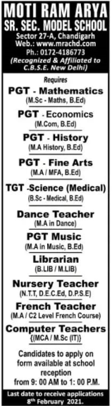 Librarian at Moti Ram Arya Model School CHD Important Dates